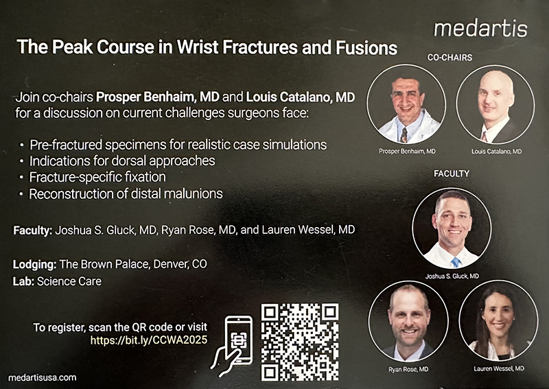Dr Catalano served as a visiting professor at the IBRA Advanced Course – Innovative Solutions: Advanced Hand and Wrist Surgical Techniques at the Mayo Clinic in Rochester, MN June 20-21, 2025